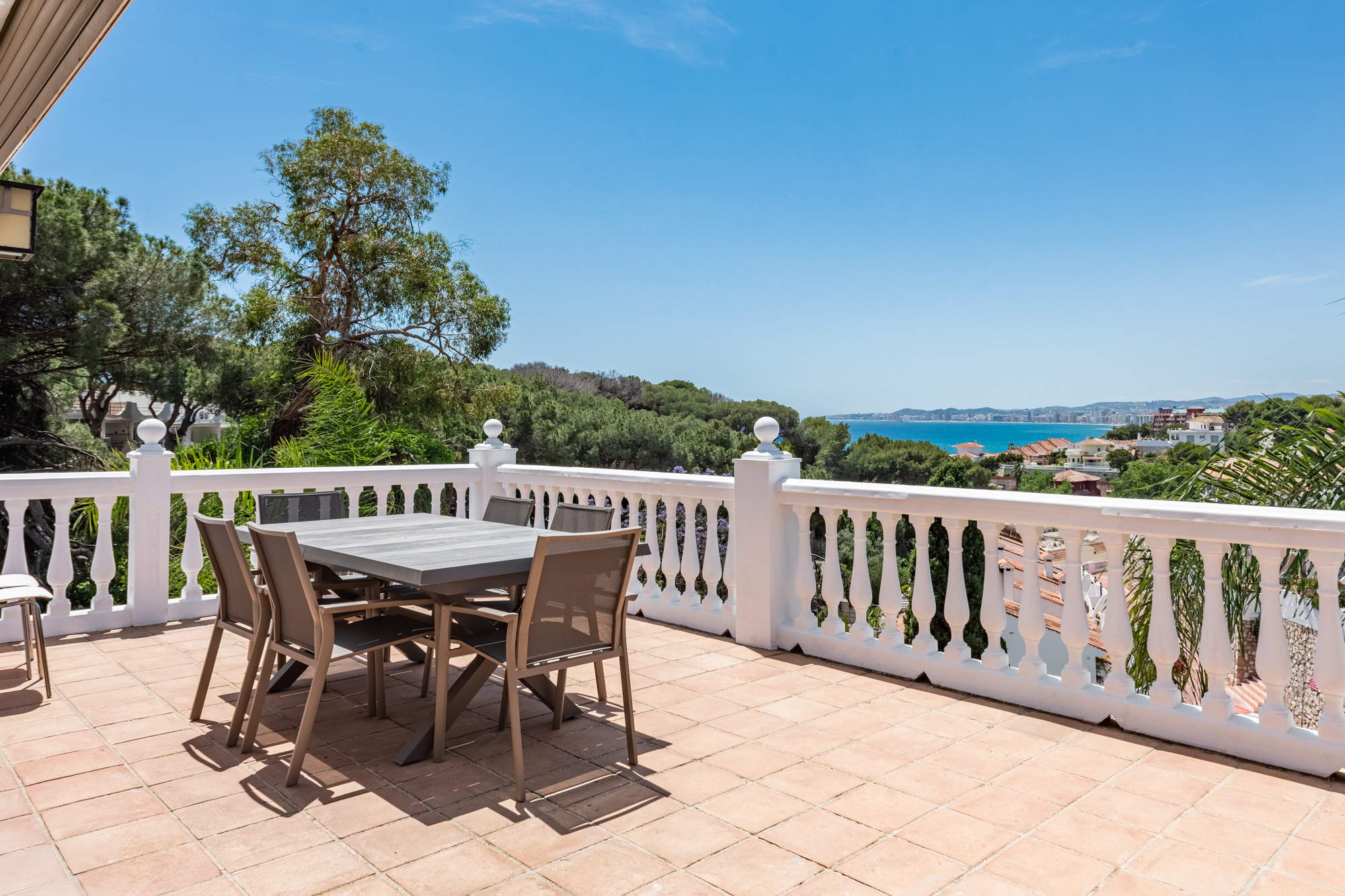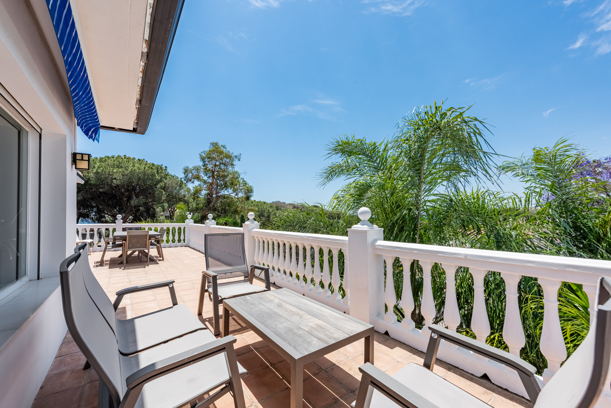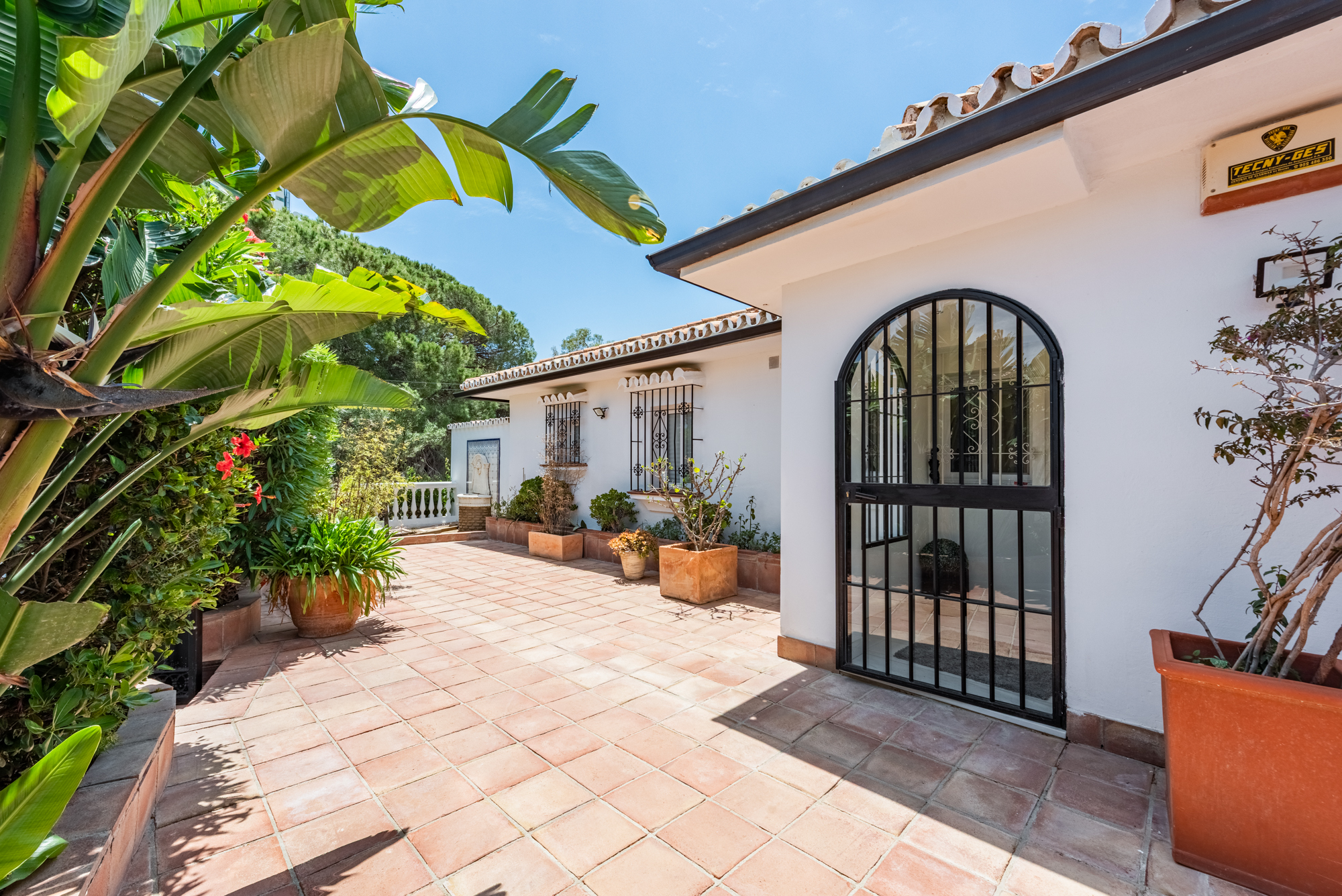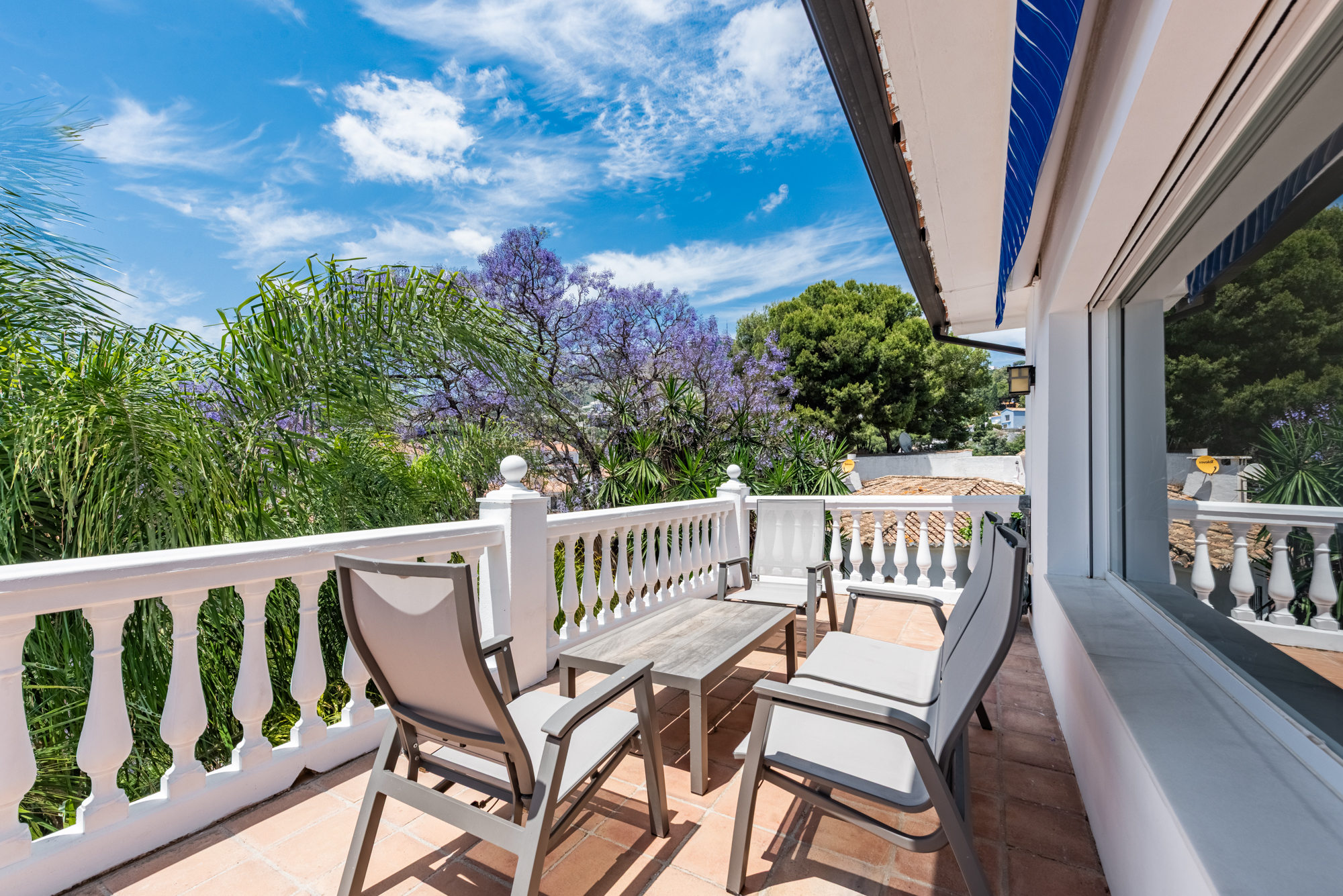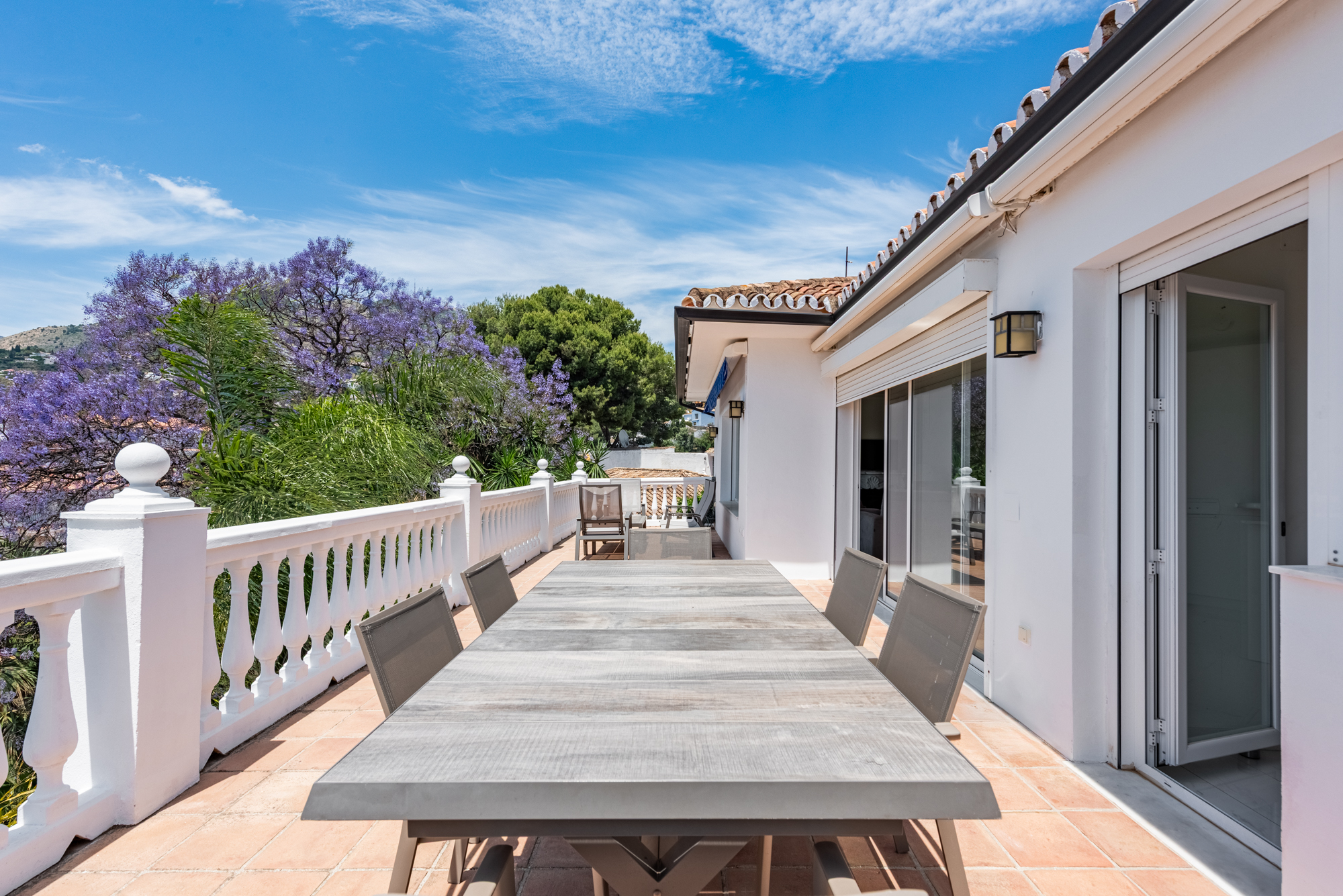 The villa offers five spacious bedrooms and four bathrooms, providing ample room for family and guests. A bright and inviting living space flows effortlessly to multiple terraces, where you can enjoy the sun or relax in the shade throughout the day. The lush green garden surrounds a private swimming pool, creating your own serene summer oasis, while an outdoor kitchen and bar make it effortless to entertain under the Andalusian sun.