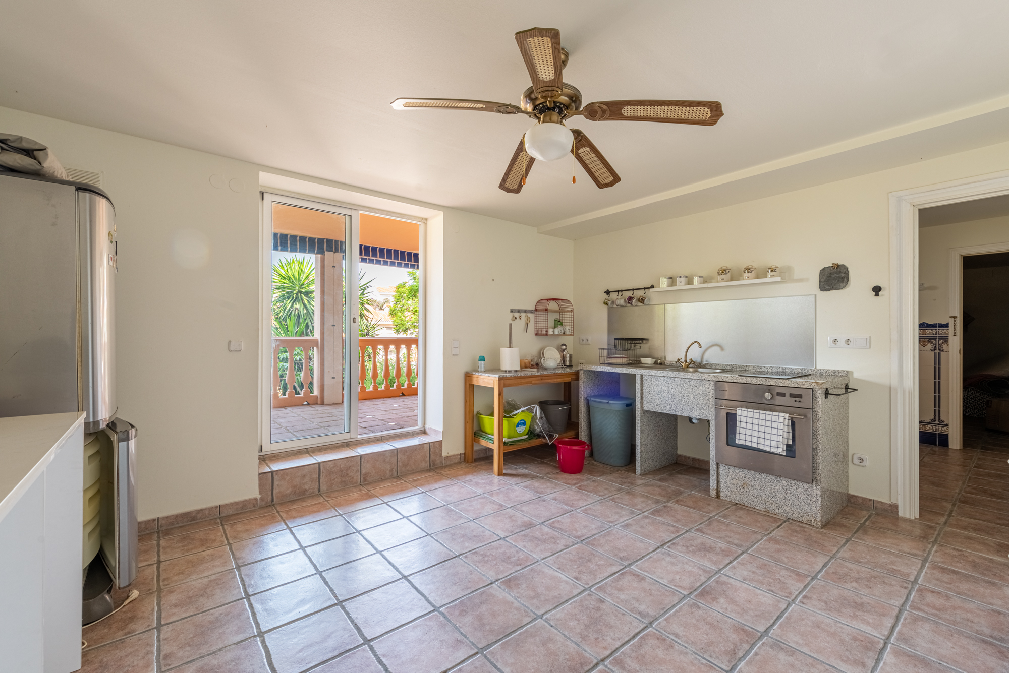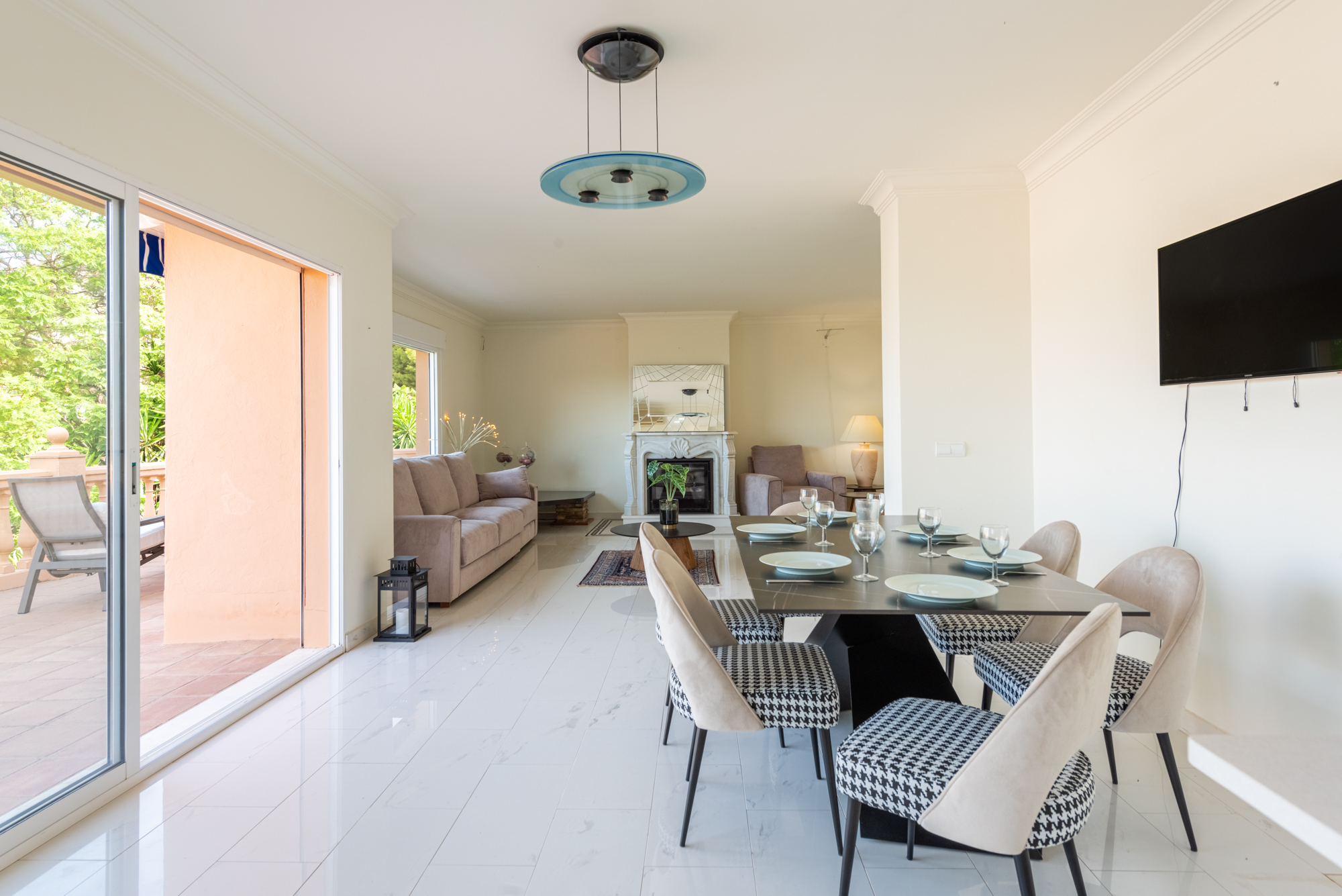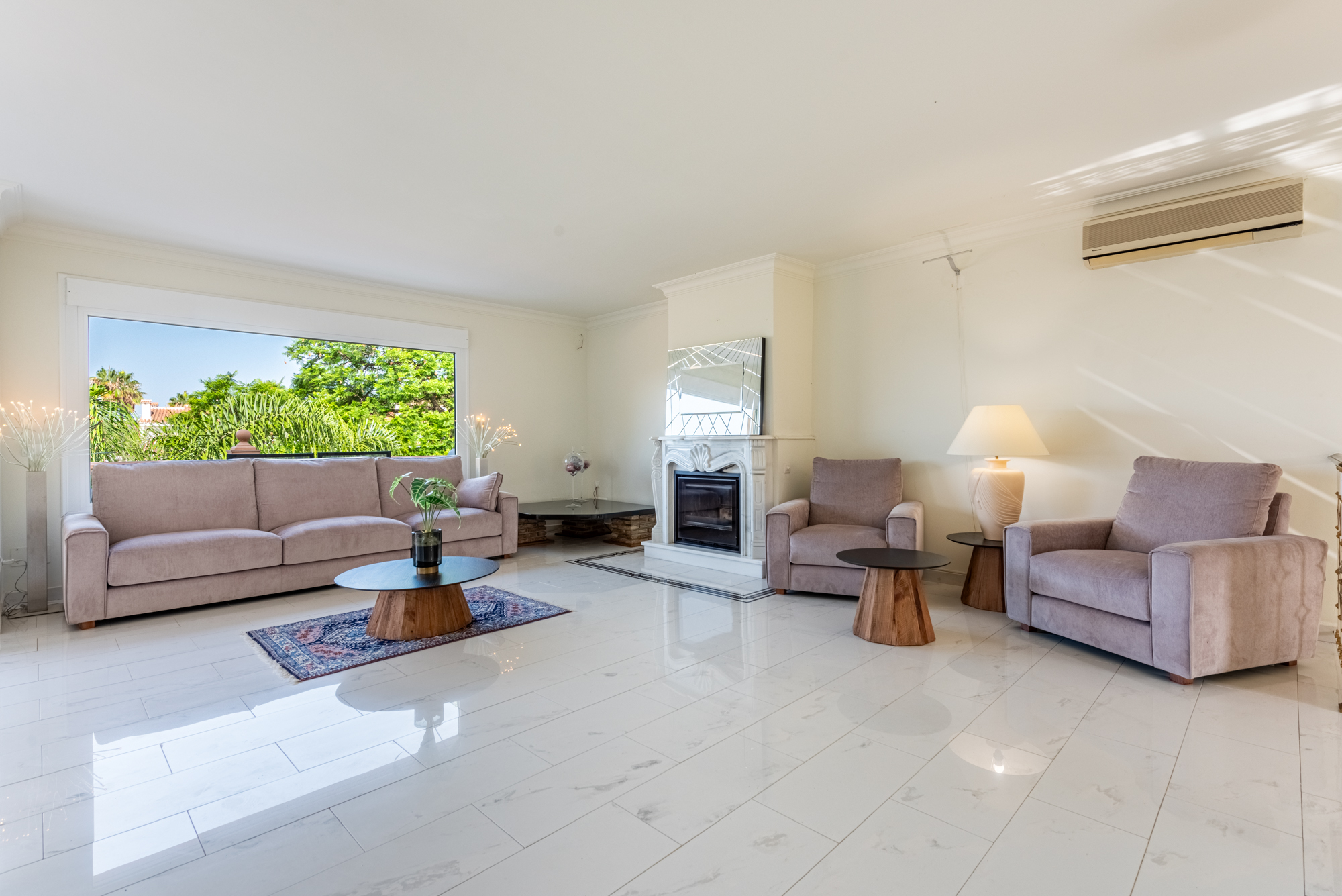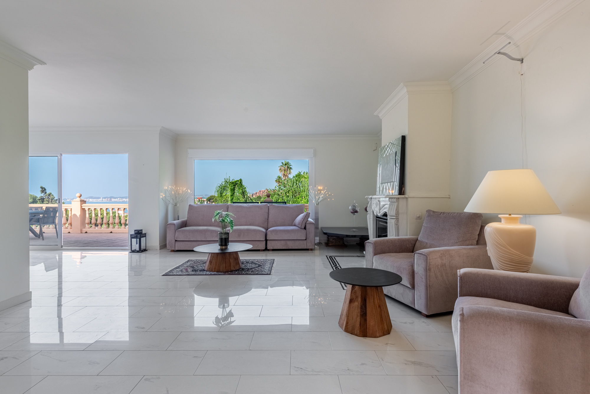 The villa offers five spacious bedrooms and four bathrooms, providing ample room for family and guests. A bright and inviting living space flows effortlessly to multiple terraces, where you can enjoy the sun or relax in the shade throughout the day. The lush green garden surrounds a private swimming pool, creating your own serene summer oasis, while an outdoor kitchen and bar make it effortless to entertain under the Andalusian sun.