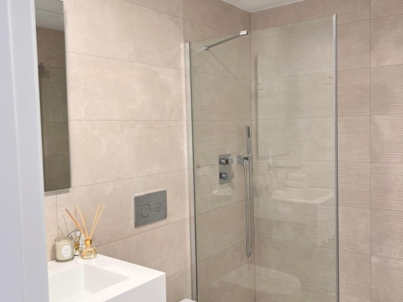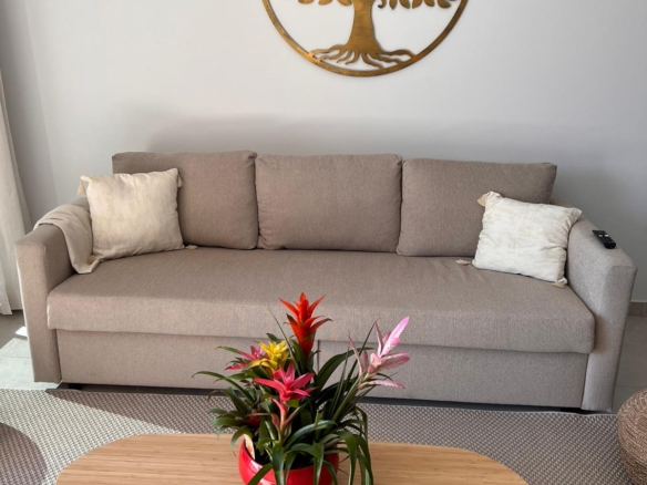Completed in 2022 and kept in pristine condition, the residence offers 2 spacious bedrooms, 2 beautifully designed bathrooms, a 120 m² wraparound balcony, and an impressive 100 m² rooftop terrace with an outdoor shower — the ideal spot for relaxing under the sun or entertaining guests.